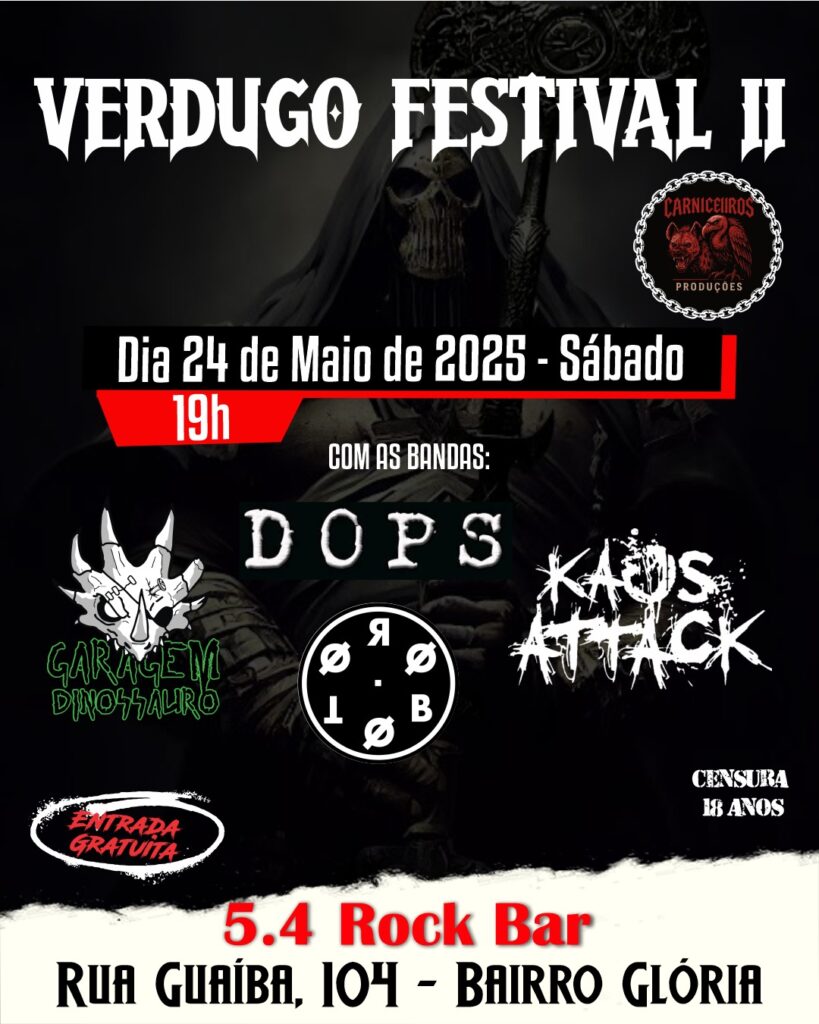 Foi nossa primeira vez no 5.4 Rock Bar e foi muito legal o “Verdugo Festival II”. Atmosfera sensacional, equipe da casa muito legal, público empolgado e a companhia das queridas bandas DOPS, Kaos Attack e Roboto.